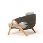 caratteristica Œmatrice genetica) della più ampia collezione, definita dall’unione tra il teak, naturale o decapato, della struttura con la corda intrecciata della seduta.