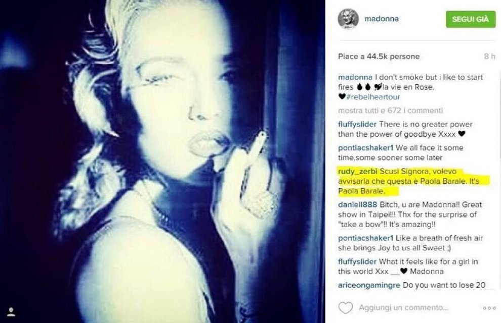 “I don’t smoke but I like to start fires (Non fumo, ma mi piace accendere il fuoco)”. Recita così la didascalia che ha accompagnato l’ultima foto pubblicata dallo staff di Madonna sul suo account Instagram. In pochissime minuti, l’immagine ha fatto letteralmente il giro del mondo. Il motivo? La donna nella foto non è Madonna, ma bensì Paola Barale da giovane.