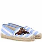 Ad ogni modo, il tocco nautical non è stato messo da parte. Anzi, è stato accentuato da alcuni brand come Dolce & Gabbana, che ha declinato la sua famosissima borsa Miss Sicily in questa fantasia scegliendo proprio l’autentico e classico contrasto tra azzurro e bianco candido. Allo stesso modo Gucci, le cui espadrillas presentano dei simpatici ricami di api, e Christian Louboutin, che ha però preferito il rigore del bianco e del nero.