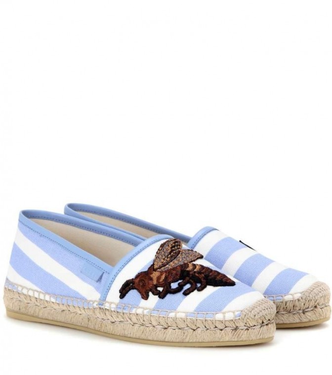Ad ogni modo, il tocco nautical non è stato messo da parte. Anzi, è stato accentuato da alcuni brand come Dolce & Gabbana, che ha declinato la sua famosissima borsa Miss Sicily in questa fantasia scegliendo proprio l’autentico e classico contrasto tra azzurro e bianco candido. Allo stesso modo Gucci, le cui espadrillas presentano dei simpatici ricami di api, e Christian Louboutin, che ha però preferito il rigore del bianco e del nero.