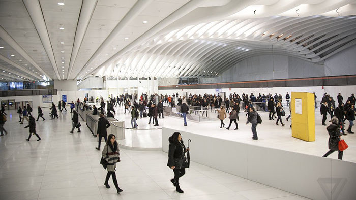 Come ogni grande evento che si rispetti, ovviamente non sono mancate le polemiche attorno all’inaugurazione e alla costruzione, molti hanno infatti criticato l’enorme budget utilizzato per la realizzazione dell’hub, 4 miliardi di dollari pubblici, oltre all’assenza di qualsivoglia elemento che ricordi una stazione classica – macchine per stampare i biglietti, orologi, mappe. Nonostante questo, l’opera resta imponente e spettacolare da guardare, eccola nelle foto di Amelia Krales/The Verge.