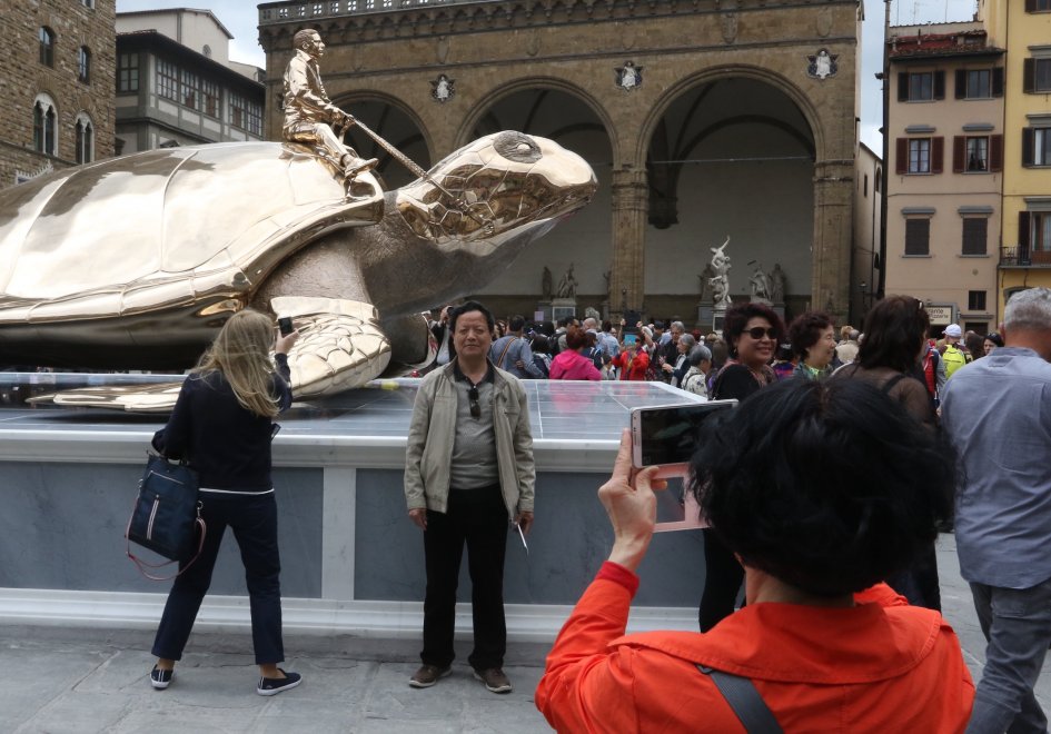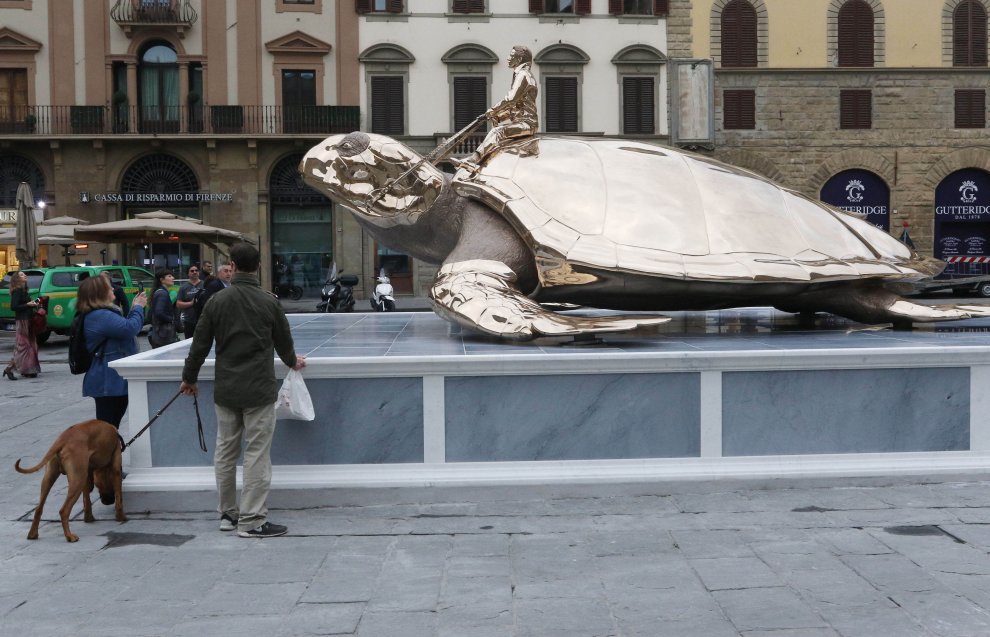 Nonostante la sua tartaruga dorata sia già un’attrazione per i turisti, Jan Fabre sta attirando verso di se numerose proteste a causa della sua mostra a Firenze. Gli utenti più imbufaliti della rete sono ovviamente gli animalisti, che accusano l’artista di non fare arte, ma soltanto orrore. Se la tartaruga in Piazza della Signoria è alquanto innocua, come opera, all’interno dell’esposizione Spiritual Guards, allestita tra piazza della Signoria, Palazzo Vecchio e il Forte Belvedere, si possono effettivamente trovare molti animali imbalsamati, utilizzati ovviamente a fini artistici.