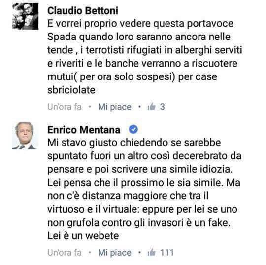 Cq9KZSoWIAAftpa.jpg-largeProprio in una di queste risposte, data a un utente di Facebook, il direttore del TG La7 ha coniato la parola “webete”, mescolando sapientemente la parola web a ebete. Praticamente parlava di un “ebete del web”, come ormai ce ne sono a migliaia nei social network. Persone “tuttologhe” pronte a commentare qualsiasi cosa con piglio generalista e frasi fatte, che sparano tesi senza competenze e fondamenta.
