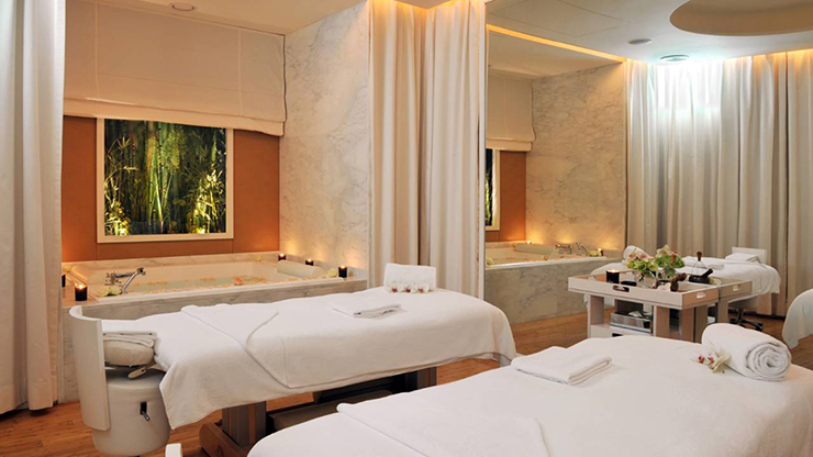 Le Spa, oltre 750 mq disegnati dal celebre Pierre-Yves Rochon, include una piscina interna, sauna e bagno turco, 5 sale trattamenti tra cui una suite per due persone e fitness room, oltre ad una selezione di massaggi, trattamenti per viso e corpo e prodotti di bellezza selezionati in base alle ultime novità nel campo dello skin care e del benessere del corpo.