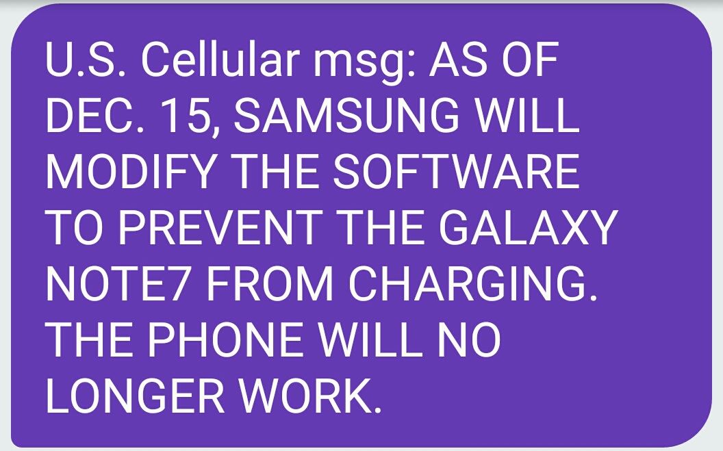 Nonostante Samsung abbia fatto di tutto per ritirare i Galaxy Note 7 venduti, richiamati e ritirati dal mercato per gravi problemi alle batterie, esistono persone che hanno rifiutato categoricamente di riconsegnare il loro prodotto. Una scelta rischiosa, poiché parliamo di dispositivi pronti ad esplodere in qualsiasi momento; proprio per evitare guai e incidenti, Samsung ha iniziato a mandare messaggi tramite gli operatori telefonici americani.
