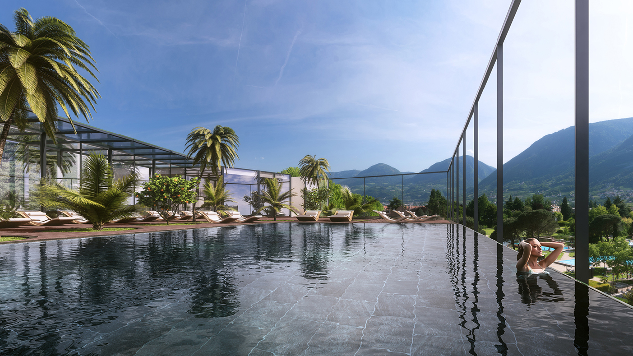 Novità benessere sopra i tetti di Merano nel 2017. Dal 13 aprile 2017, sarà possibile nuotare in piscina a cielo aperto, riattivare le proprie energie con un massaggio, oppure una sauna, rilassarsi al sole con lo sguardo volto sullo scenografico paesaggio altoatesino e richiedere trattamenti bellezza esclusivi; questo e molto altro nella nuova Sky Spa dell’Hotel Terme Merano, la prima in Alto Adige situata in pieno centro. Un’oasi di benessere unica di 2.700 m², con una vista panoramica a 360° sulla città termale altoatesina dove la principessa Sissi, Imperatrice Elisabetta d’Austria, amava trascorrere le vacanze.