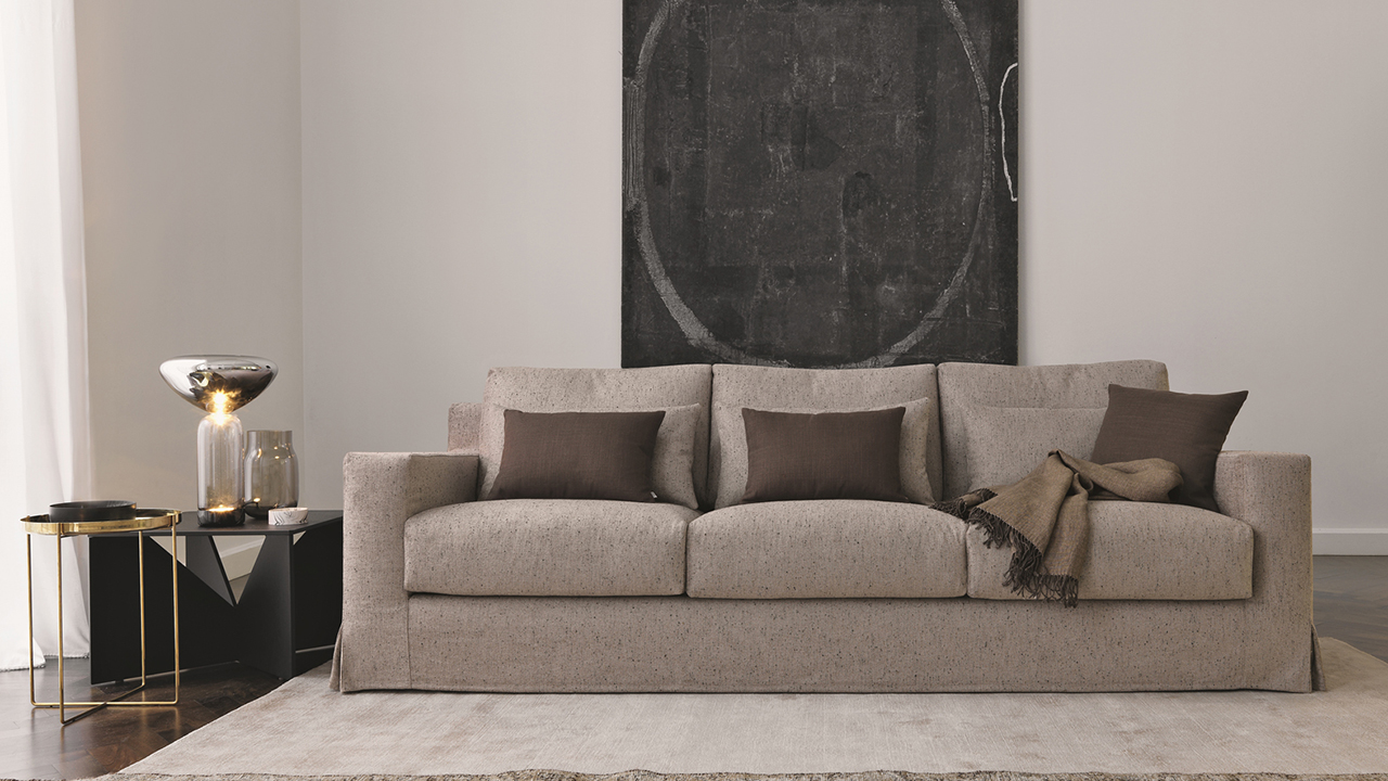 Divano due e tre posti con struttura e cuscini rivestiti in tessuto, pelle o Ecopelle completamente sfoderabile.