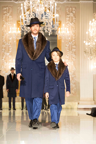Una Sala Bianca che accoglie nella prima uscita un bambino, vestito con un modello SR Junior, perché l’eleganza si impara fin da piccoli, con la staffetta del bello e dell’esclusivo passata da padre a figlio. Così la sfilata oltrepassa i confini del fashion per diventare messaggio di gioia.