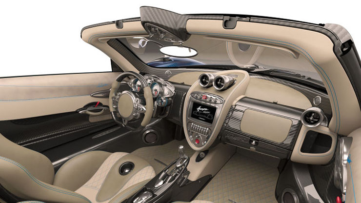 È una piccola opera d’arte figlia di un lavoro durato anni, che ha portato a ridurre la rigidezza dell’auto del 52% grazie al suo corpo futuristico. Corpo spinto da un motore Mercedes-AMG M158 biturbo a 12 cilindri a V da 5.980 centimetri cubici sviluppato in esclusiva per Pagani, in coppia con un cambio all’avanguardia AMT a sette rapporti costruito da X-Track ad attivazione elettronica e idraulica. I selezionatissimi acquirenti potranno scegliere fra due tipi di tetto, una versione lo avrà rigido in carbonio leggero con un elemento centrale in vetro, un’altra lo proporrà in tela e in carbonio. Secondo Horacio Pagani, l’idea del tetto panoramico è perfetta per ammirare le bellezze dell’Italia, anche se probabilmente il vero spettacolo sarebbe appena sotto le nostre natiche..!