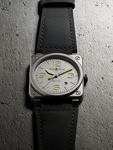 Il BR03-92 Horograph e BR03-92 Horolum sono stati progettati seguendo i principi di estetica industriale. Le loro linee semplici, basate su una cassa quadrata, sottolineano l’essenziale. Ognuno di questi orologi contemporanei ha un carattere estremamente deciso ed entrambi evocano il mondo del trasporto aereo. Il BR03-92 Horograph ricorda gli orologi nel terminal dell’aeroporto. Come loro questi, il suo display è semplice e ordinato, dotato di un quadrante grafico con indicazioni chiare. Il BR03-92 Horolum invece riproduce i codici di illuminazione della pista, utilizzati per guidare i piloti notte e giorno.