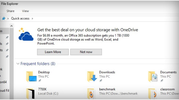 In questi banner pubblicitari, posti appena sopra ai nostri file salvati, Microsoft prova a convincerci ad usare OneDrive per 6,99 dollari al mese, oppure sottoscrivendo un abbonamento a Office 365 per avere 1 TB di spazio cloud. Per ora si tratta dunque di una pubblicità interna alla stessa Microsoft, presto però l’azienda potrebbe decidere di vendere quegli spazi ad agenzie terze. Visto il numero impressionante dei PC Windows 10 in circolazione, provate a immaginare quanti soldi potrebbe spostare Microsoft nelle sue casse, ma chi pensa ai poveri utenti? Ora resta da capire se gli spot appariranno a tutti gli utenti oppure solo in versioni Lite di Windows, lo scopriremo molto presto..!
