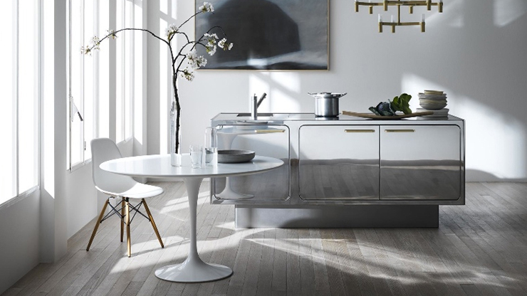 La finitura dell’acciaio AISI 304 è ora disponibile anche nella versione lucida: i blocchi che compongono la cucina, ideati e costruiti ad hoc in base a ciascun progetto, possono infatti essere caratterizzati da un effetto a “specchio”, con sfumature cangianti in grado di regalare alla cucina l’immagine di un prezioso monolite. La nuova finitura dimostra, ancora una volta, l’attenzione di Abimis nella lavorazione artigianale: è infatti realizzata interamente a mano, mediante trattamenti articolati in più fasi.