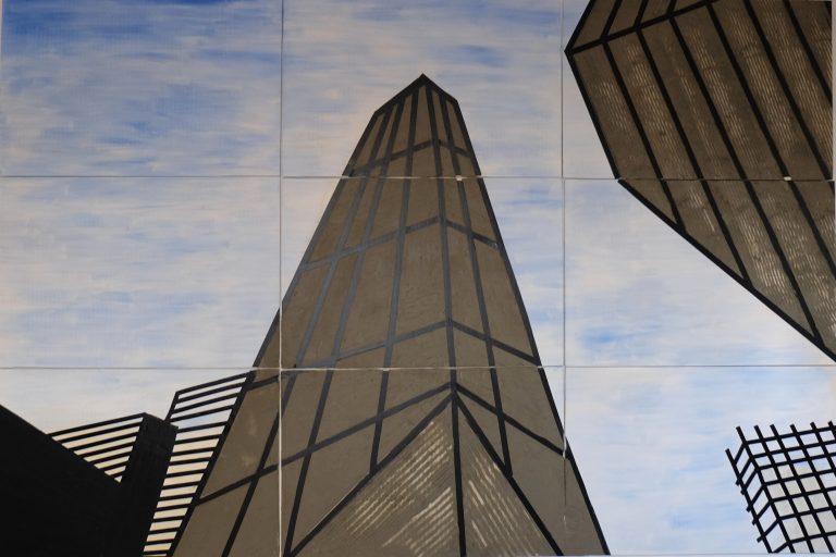 Le tre grandi tele di Leandro Lottici portano lo spettatore a un punto di vista quasi impossibile, con visioni geometriche di apparente astrazione, metafora della frammentazione dello sguardo umano nel caos della metropoli contemporanea.