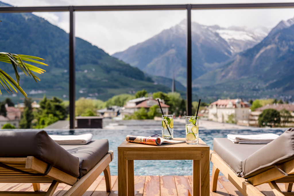 Inaugurata la Sky Spa dell’Hotel Terme Merano di 3.200 metri quadri. La superficie ricopre l’intero tetto dell’albergo in pieno centro città e ha una vista a 360° sul paesaggio alpino.