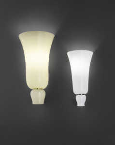 Classiche e intramontabili, le applique Anni Trenta sono un progetto del 1997 che rivela l’abilità di VENINI di rinnovarsi nella tradizione. Le linee semplici ma seducenti sono plasmate con l’antica tecnica della soffiatura; le superfici lattiginose raccontano l’esclusiva abilità di VENINI nella lavorazione della nuance Lattimo e Pagliesco, che donando al vetro un effetto intenso e brillante, quasi laccato.