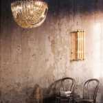 Disegnata nel 1960, Triedri si ispira all’estetica degli anni 20 e alle atmosfere luxury di quell’epoca. Il vetro riflette la luce nelle sfumature del cristallo o dell’ambra e oltre a interpretare la propria dimensione decorativa trasmette flussi luminosi in tutta la proporzione del lampadario. Gli elementi realizzati artigianalmente uno per volta si avvolgono e si intrecciano in una semisfera, se proposti come lampadari, oppure si accostano in un effetto tridimensionale nella variante a parete, come quella scelta per gli ambienti del ristorante Saigon.