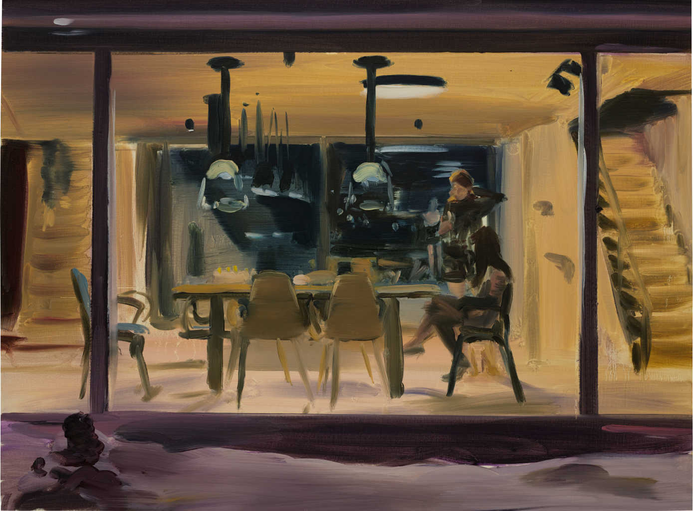 Scene notturne vissute al riparo delle pareti domestiche, nella cucina di una casa o tra un bagno in piscina e una festa in giardino, svelano insolite relazioni giocando con una pittura “senza luce”, tra realtà e finzione.