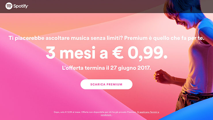 Tre mesi di Spotify Premium a 0,99 euro