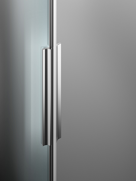 Il design di questi box doccia è caratterizzato dalle grandi trasparenze dei vetri e dai riflessi delle cromature che si integrano perfettamente con l’ampio vetro scorrevole di accesso, affiancato sempre, nelle varie configurazioni, da un vetro fisso in linea, ancorati ad una struttura perimetrale metallica portante. Il meccanismo di scorrimento è stato interamente alloggiato nelle ruote a cuscinetto, collocate nella parte superiore del vetro mobile e regolabili in altezza per fronteggiare all’eventuale pendenza del pavimento. Le porte sono inoltre facilmente sganciabili per consentire una pulizia più semplice e accurata. Il profilo murale è dotato del sistema “Easy-Fix” che permette una facile regolazione del profilo e internamente è completamente liscio per una pulizia più agevole.