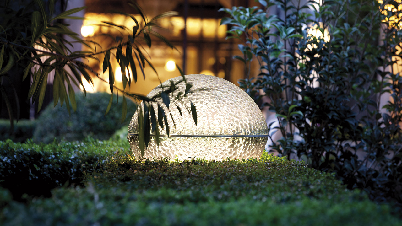 Come avviene per la lavorazione di tutte le lampade di Catellani & Smith, estetica e artigianalità vengono combinate con le più recenti tecnologie. La creazione di maggiore effetto è sicuramente Medousê (foto in apertura), un corpo luminoso composto da due coppe di vetro sovrapposte, che spento è di colore verde per integrarsi perfettamente nel paesaggio, mentre acceso si illumina di un bianco etereo. Sempre in vetro industriale, la composizione di forme irregolari More che, sostenuta da aste color oro verde, sembra ‘spuntare’ dal suolo come una siepe luminosa. Con un soffio di vento, More oscilla, diventando poi il frutto di un albero nel pezzo unico Albero della Luce, realizzato da Enzo Catellani nel 2005, il cui tronco in rame dalle varie sfumature di colori, ci riporta a una natura magica del passato.