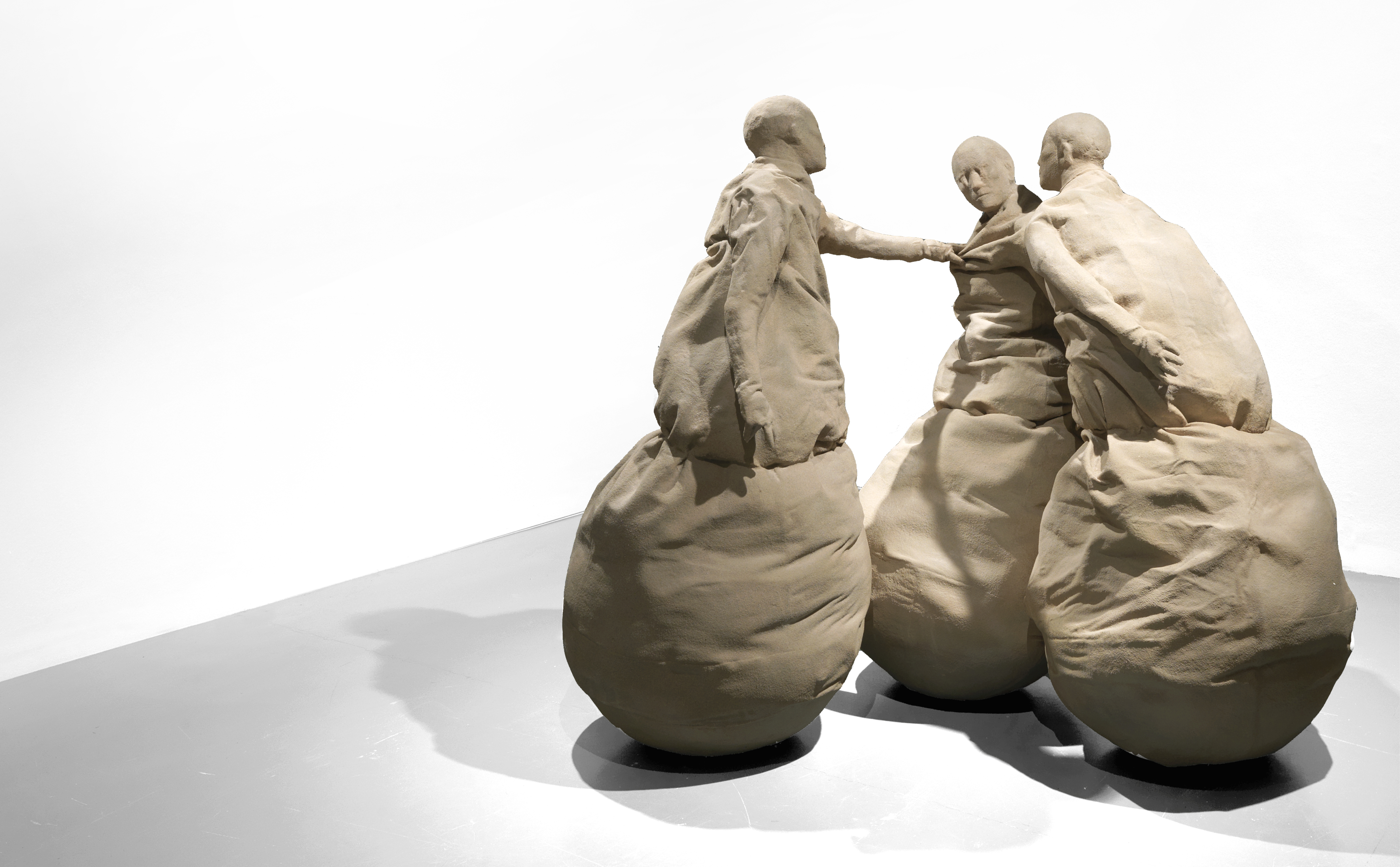 Come suggerito dai gesti espressivi dei tre personaggi di Muñoz, la mostra possiede la forza del dialogo ma anche quella della dialettica, animata dalla seduzione e dalla ricerca di un significato rivelatore. L’interazione tra le opere segue da una parte i canoni dell’estetica minimalista e dall’altro la triplice relazione tra architettura, scultura e figura umana.