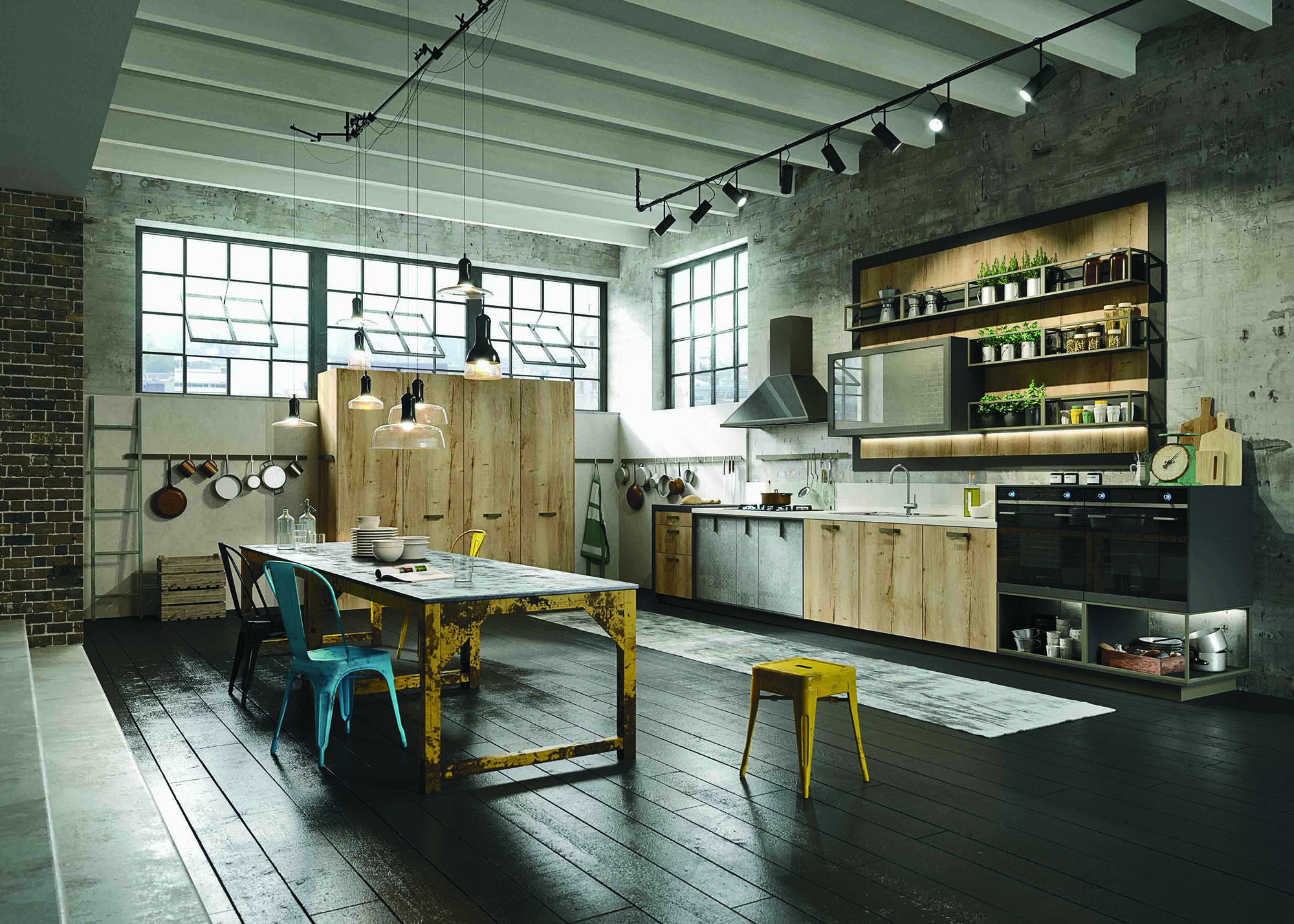 Parola d’ordine: contaminazione. È lo spirito di Loft di Snaidero, la cucina perfettamente ispirata ad un mood urbano ricco di citazioni e suggestioni. Prime tra tutte quelle che provengono dal mondo metropolitano industriale, quelle legate ai loft di antica memoria dove i materiali grezzi, a partire dal legno, i metalli ossidati dal tempo e le grandi scaffalature sono i segni più tangibili di un passato recente che riaffiora oggi, più contemporaneo che mai. LOFT è espressione delle più recenti tendenze “urban”: mobili compatti e resistenti in laminato legno effetto “vissuto” abbinato a materiali che appartengono alla natura: legno, metallo e vetro combinati tra loro per creare un’atmosfera vissuta, che evoca status symbol urbani.