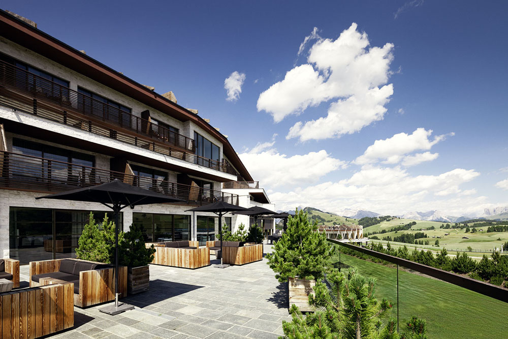 L’Alpe di Siusi è un altopiano dolcemente adagiato in un incomparabile scenario dolomitico caratterizzato dall’inconfondibile skyline del Sassolungo e del massiccio dello Sciliar. Qui, ai 1860 metri in località Compatsch, all’estremità occidentale dell’altopiano, sorge Alpina Dolomites Lodge & Spa, struttura a 5 stelle che aderisce alla catena Leading Hotels of the World ispirata a un innovativo concept architettonico che ha fatto suoi i suggerimenti della natura circostante: edifici in legno, pietra e vetro, costruiti secondo criteri di sostenibilità e basso consumo energetico, inseriti perfettamente nell’ambiente coniugando accattivante design e vocazione eco.