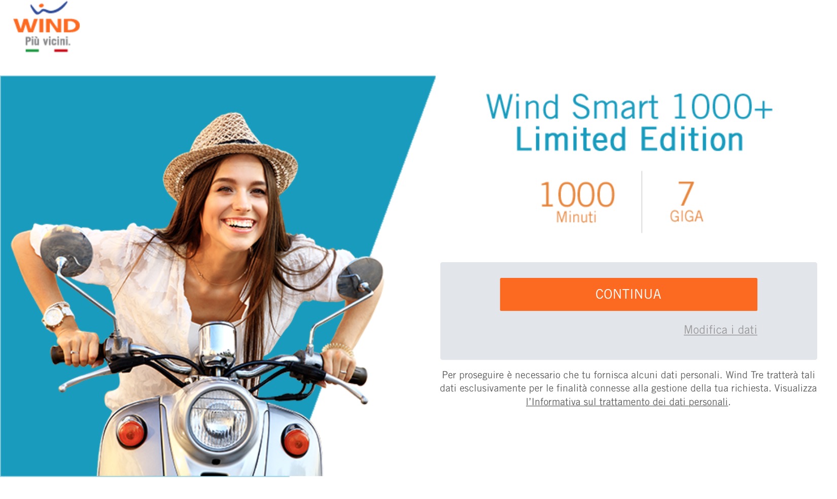 Attualmente la Wind Smart 1000+ Limited Edition si può attivare da tutti, nuovi clienti e portabilità, bisogna però recarsi su questa pagina dedicata. Bisogna lasciare il proprio CAP di residenza e la propria email, successivamente il proprio indirizzo di casa, nome, cognome, numero e codice fiscale. Dopo l’attivazione la SIM viene spedita direttamente a casa, all’arrivo del corriere bisognerà pagare 25 euro per avere una SIM nuova con 1 euro di traffico all’interno e la promo già attiva. Dai 25 euro bisogna scalare 9 euro il costo della SIM, 5 euro per l’attivazione della promo, 10 euro per le prime quattro settimane dell’offerta, motivo per cui resta un solo euro.