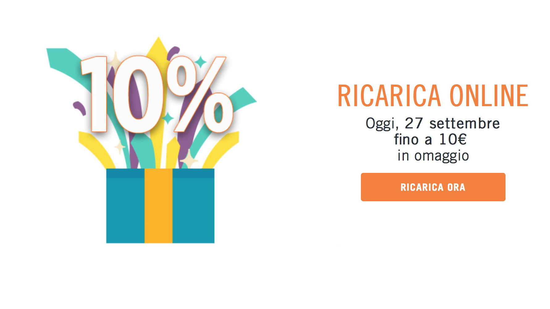 Ricaricando 100 euro se ne ottengono 10 di traffico aggiuntivo, può dunque essere una buona iniziativa. È però valida soltanto per oggi 27 settembre, lo ricordiamo. Attenzione però, il traffico bonus non è rimborsabile o trasferibile in nessun modo in caso di disattivazione della SIM. Nel caso in cui decidiate di trasferire il numero ad altro operatore il credito bonus andrà perso. Se invece non avete alcuna intenzione di cambiare operatore, il credito resterà a vostro uso e consumo, ma affrettatevi.