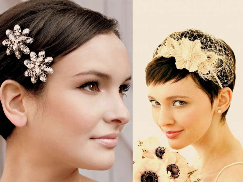 Anche per le spose dai capelli corti che amano la praticità, ci sono tante acconciature sposa tra cui scegliere. Se avete i capelli cortissimi stile pixie, potete giocare con accessori di vario tipo come coroncine di fiori più o meno colorate e vistose, pettinini di madreperla e turchese, semplici nastri di raso o merletto o cerchietti con velette per un look più vintage.