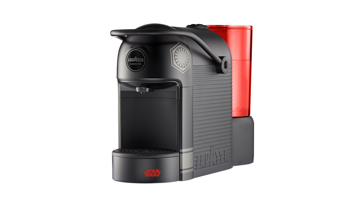 Oramai da qualche anno, con l’avvicinarsi di dicembre, tutto il mondo si tinge di Star Wars. Il 13 dicembre infatti arriverà nei cinema un nuovo capitolo della saga, Star Wars: Gli Ultimi Jedi, e molte aziende stanno facendo a gara per accaparrarsi il favore del marchio e dei personaggi. Dopo i robot aspirapolvere di Samsung, oggi è il momento delle macchine da caffè Lavazza A Modo Mio, che al Lucca Comics & Games presenteranno in anteprima la nuova Jolie Plus ispirata al prossimo film di Star Wars. In particolare è ispirata al Primo Ordine, l’organismo politico guidato da leader supremo Snoke. Questa edizione limitata di promette un caffè buono come quello fatto al bar grazie a nuove funzionalità, un funzionamento silenzioso e dimensioni compatte.