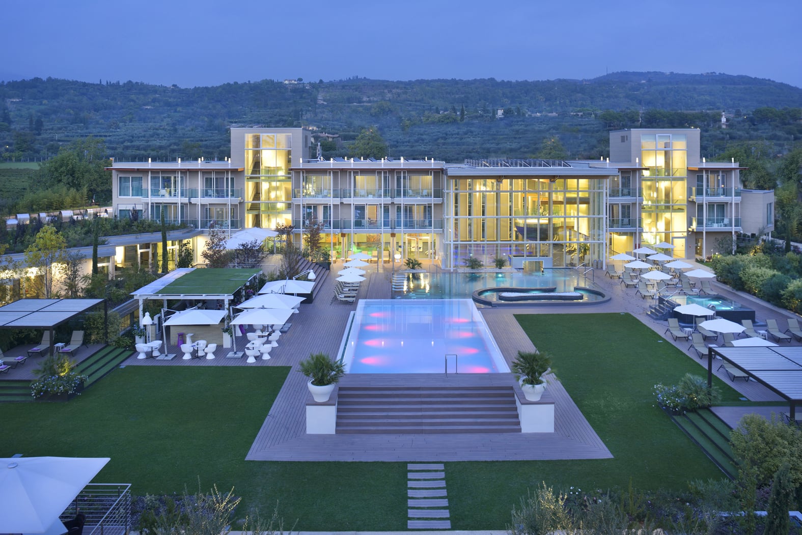 Benessere totale e armonia rigenerante: questo il binomio che contraddistingue un contesto unico che ha dato forma al progetto di AQUALUX Hotel SPA Suite&Terme di Bardolino. Il concetto di benessere non si esalta esclusivamente nell’eccellenza dell’offerta della SPA ma si concretizza anche nella scelta dei materiali bio-compatibili utilizzati per la sua costruzione, il legno costituisce infatti l’ossatura 100% green dell’hotel, nell’impiego di energie rinnovabili e nell’utilizzo di software gestionali che controllano il risparmio energetico idrico e l’insonorizzazione naturale certificata. Cascate di piante disegnano il perimetro della struttura e giardini pensili ricoprono il tetto quasi a costituire materia di costruzione e di design.