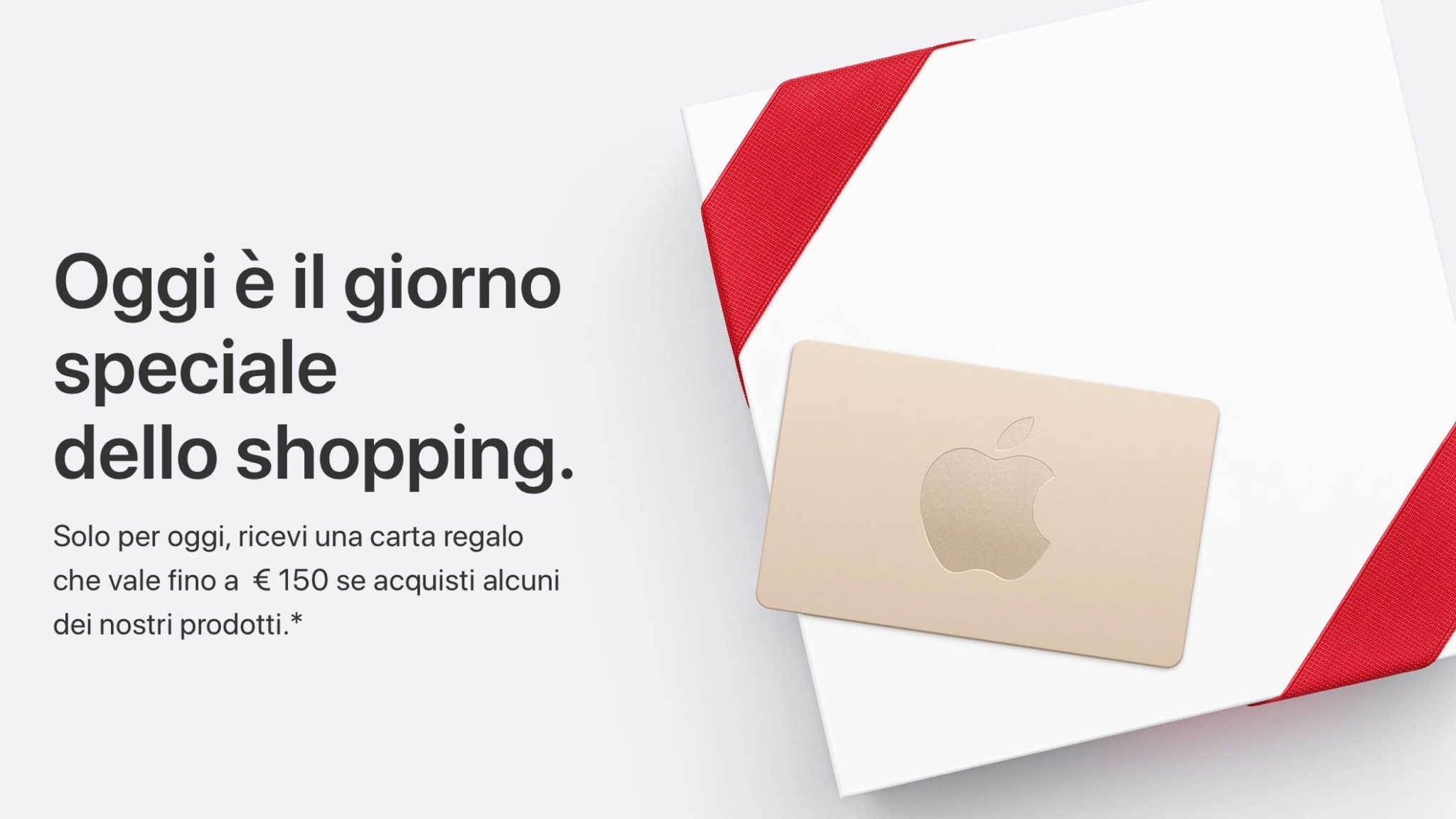 Quest’anno la società di Cupertino ha ben pensato di regalare ai suoi utenti delle Gift Card con del credito dentro, da spendere sempre nei negozi Apple. Acquistando un iPad ad esempio si può ottenere una carta regalo fino a 100 euro di credito, con iPhone fino a 50 euro, si possono ottenere fino a 25 euro acquistando Apple Watch e fino a 150 euro con un nuovo Mac, è valido ogni modello, dal Macbook al Mac Pro. Ovviamente la promozione è valida soltanto per oggi, negli Apple Store fisici e online, meglio approfittarne subito.