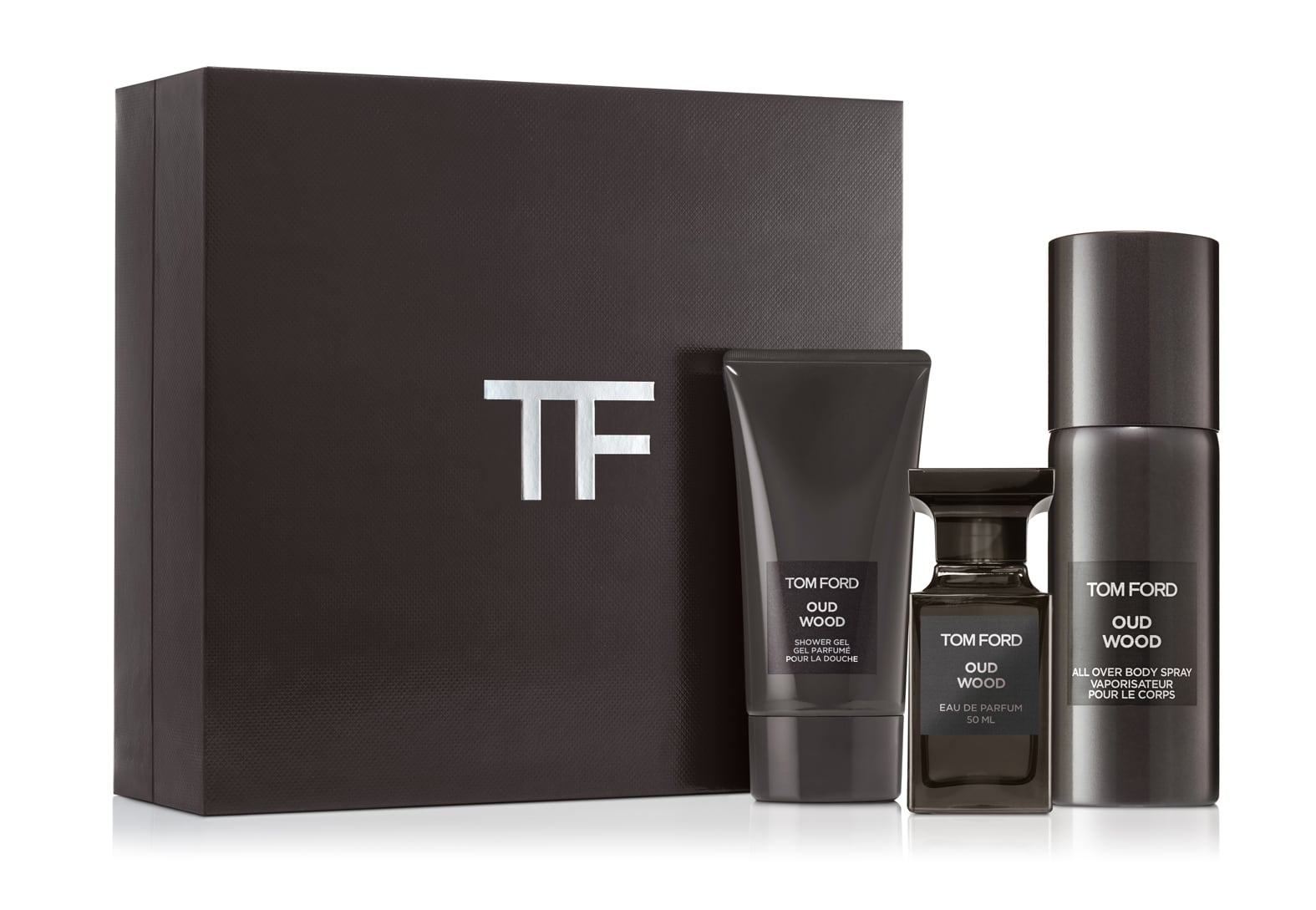 Tom Ford propone per le prossime festività un cofanetto regalo contenente: Tom Ford Oud Wood EDP, Tom Ford Shower Gel e Tom Ford Ooud Wood All Over Body Spray.
