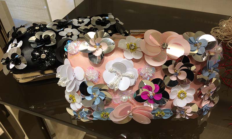 … oltre alla linea Bow, la rigida clutch con applicazioni di maxi pailettes (disponibile in nero e color cipria) che creano disegni floreali 3D e ancora Nautica proposta con stampe rigate per le donne che amano un gusto classico.