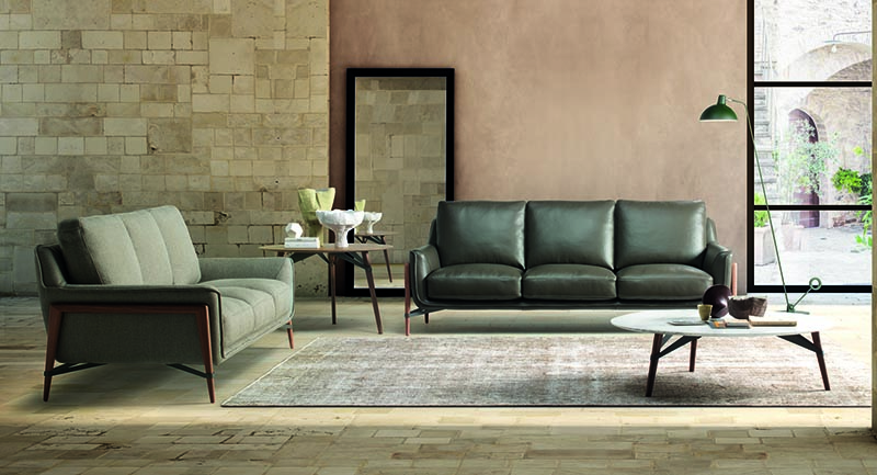 Le proporzioni tipiche degli anni ’50 sono riproposte dagli architetti Manzoni e Tapinassi dello Studio Memo nel sistema Svevo by Natuzzi Italia. Una collezione che comprende divano, cofee table, tavolo da pranzo e sedia, madia, consolle, letto, cassettiera e comodini per la zona notte e si contraddistingue per le forme arrotondate e avvolgenti e per la struttura dei piedi realizzata in legno massello impreziosito da dettagli metallici di gran pregio.