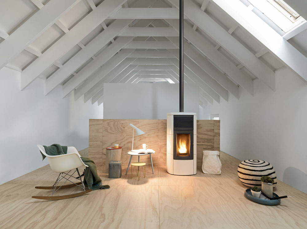 Un prodotto esempio è il termocamino a pellet Vivo 85 Hydro di MCZ (nella foto di apertura) rientra nella classe di efficienza A++. Offre performance rilevanti soprattutto per quanto riguarda efficienza ed emissioni. Scalda efficacemente sia l’acqua dell’impianto riscaldamento (termosifoni o impianto a pavimento), sia l’ambiente in cui è installato, tramite un’uscita d’aria molto discreta posta lungo la cornice inferiore. Si installa in modo semplice e veloce, disponibile in acciaio effetto ruggine o verniciato white o bordeaux.