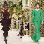 La primavera porta i fiori più belli: è l’ispirazione di Karl Lagerfeld per la nuova Collezione Haute Couture primavera-estate 2018 di CHANEL. I modelli coronati di arricciature floreali e veli di tulle, sono arroccati su bottoni coordinati in tweed, in pelle o in tulle ricamato, con tacchi trasparenti. La donna di Chanel sboccia da strati sottostanti e strati di tulle di seta, chiffon e organza pieghettati o arricchiti con ricami botanici composti da paillettes, perline, pietre e strass.