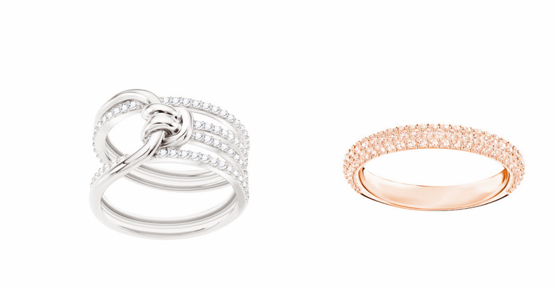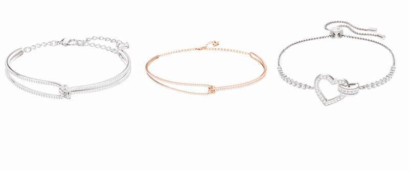 La nuova collezione dona una prospettiva fashion al motivo del nodo che simboleggia l’amore eterno, mentre cristalli trasparenti sono splendidamente incastonati nelle placcature oro rosa e rodio, come mostra l’audace bracciale rigido bicolore e l’attualissimo anello doppio. Bangle, choker, pendenti e anelli sono inoltre disponibili in misure più piccole e possono essere abbinati ad altri oppure indossati come raffinati gioielli singoli.