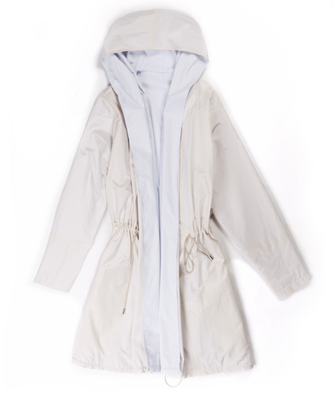 Cappotti e mantelle, nei toni del verde acqua o nella tonalità cipria, sono realizzati nel leggerissimo double di cashmere e in lana-seta con trattamento Thermo, che li rende impermeabili e antivento. Cappottini reversibili svasati, cappotti lunghi e peacoat trapuntati sono la novità della collezione nel double di cashmere “patchwork”, abbinato al tessuto tecnico: perfetti per le fresche giornate di primavera.