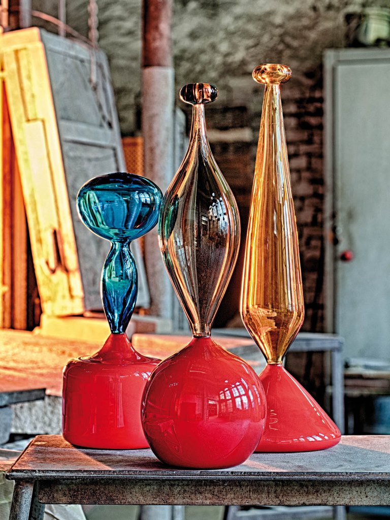 Nell’esperienza manifatturiera dei maestri vetrai delle fornaci Venini, il colore diventa elemento strutturale del progetto, definendone l’aspetto formale, così come i contenuti scultorei. Le tecniche di lavorazione della materia prima, sperimentate nel tempo dai maestri artigiani, sono parte integrante del linguaggio creativo che definisce le numerose collezioni artistiche prodotte dall’antica fornace.