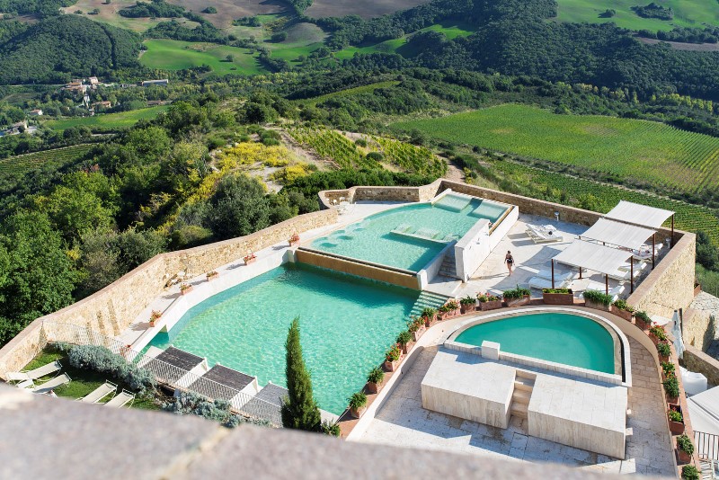 L’hotel dispone di due piscine esterne affacciate sui vigneti del castello, da cui si produce il famoso vino Brunello di Montalcino. Non manca lo spazio benessere con la OLISPA che vanta la fonte vulcanica più calda di tutta la Toscana. Un’oasi di puro relax che si estende su una superficie di 1500 mq dove domina il travertino. Ogni angolo della OLISPA è pensato per offrire un’esperienza sensoriale completa, arricchita dalla presenza di terapiste esperte che sapranno guidare gli ospiti nella scelta dei numerosi trattamenti. Ma anche trattamenti privati nella Spa Suite, per regalare momenti di puro benessere esclusivo.