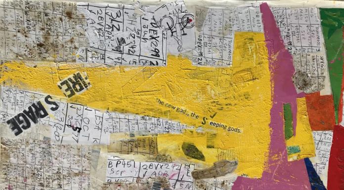 Fragments of Memories, questo il titolo della personale di Brian D. Murphy, raccoglie lavori caratterizzati dall’inserimento di ritagli di vecchi giornali, fotografie, ricordi, che contribuiscono a dare vita a specifiche storie. Elementi, questi ultimi, accostati o intrecciati su tela senza alcun tipo di gerarchie. Un lavoro che risulta essere un procedimento inconscio e fluido che mette in campo vere e proprie stratificazioni. Il processo che guida il suo operato è quello del “ricordare”.