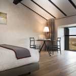 Gli spazi interni e le 12 camere, una diversa dall’altra, sono realizzati e arredati con materiali, tessuti e tinte naturali, mentre le grandi vetrate affacciate sul verde del giardino creano un armonioso dialogo tra interno ed esterno.