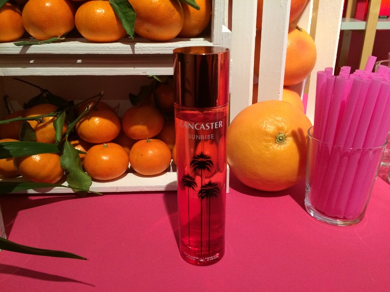 Lancaster ha creato una composizione solare che evoca la pelle baciata dal sole, la frutta fresca e matura dell’estate. Come una cartolina estiva stimola la fantasia, così Lancaster Sunrise intriga con le sue note intense di ribes nero, mandarino e pompelmo rosa prima di sedurre definitivamente con la sensualità ammaliante di un bouquet di fiori esotici. Una fragranza che evoca la cremosità di un bocciolo di frangipane coniugata alla solarità di un fiore ylang-ylang, esaltati dalla presenza luminosa del gelsomino Sambac. La dolcezza del legno di cedro lambita dalla morbidezza del muschio prolunga la sensazione di un bagno solare stupendo, mentre un delizioso sentore di calore extra trapela dall’Ambrox. L’effetto generale è quello di un’irresistibile coccola da apprezzare di giorno e di sera. Non fotosensibilizzante, Sunrise è una fragranza che può essere assolutamente indossata anche al sole.