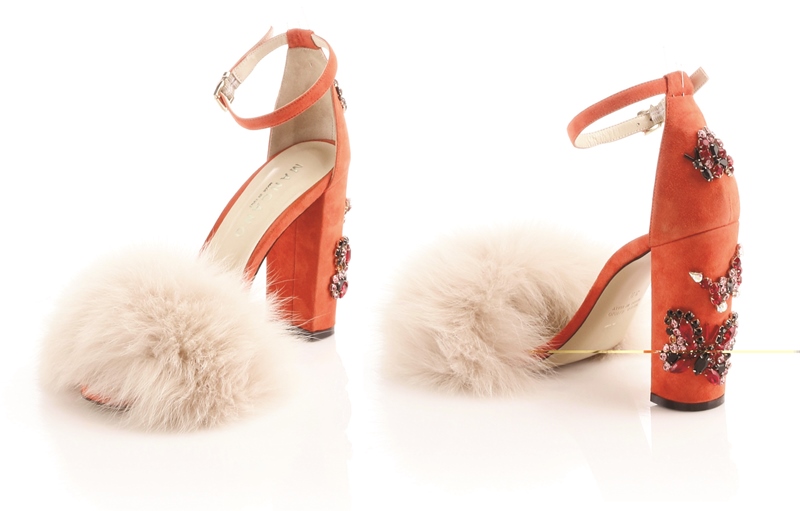 Creato per chi non si lascia scoraggiare dalla brezza troppo insistente e chi ha voglia di far spiccare il volo ai propri outfit, ha una forma iper femminile data da un mix di caratteristiche uniche. Si parte dall’altezza: un tacco 95 largo eportabilissimo. Si prosegue con il materiale: un camoscio caldo, morbido e atutto comfort. E poi, si arriva ai dettagli clou, dal glam rock & luxury: la pelliccia di volpe che riveste la tomaia (e regala il giusto tepore nelle serate più fresche) e il prezioso ricamo che illumina di perle, castoni e beads tacco e tallone.