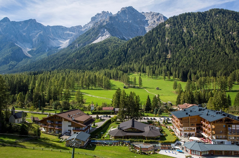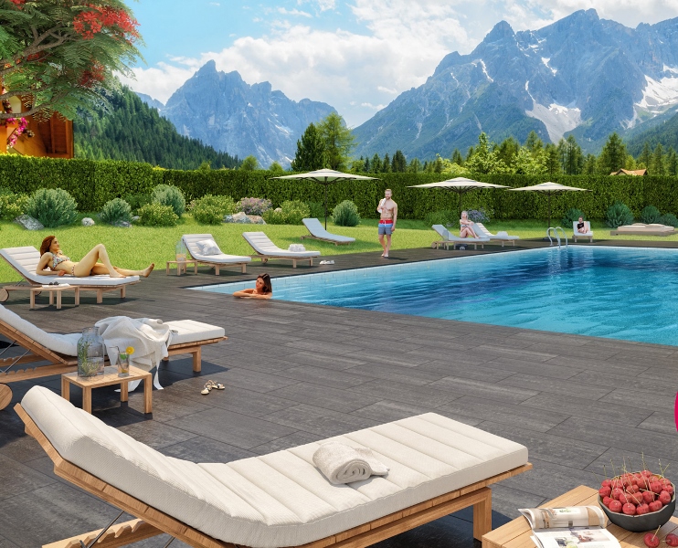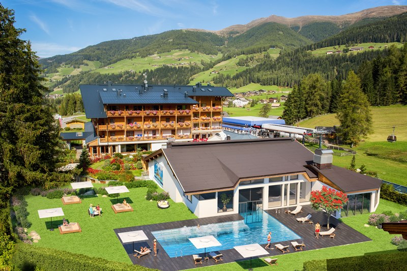 Uno specchio azzurro nel quale si riflettono le cime imponenti delle Dolomiti di Sesto, patrimonio dell’umanità Unesco, mentre tutt’intorno un giardino curato e fiorito regala angoli di relax. È la nuova piscina esterna del Bad Moos Dolomites Spa Resort di Sesto. Coccolati da un caldo idromassaggio, ci si gode la vista spettacolare sulle montagne e il paesaggio naturale circostante. Un luogo di pace dove liberare la mente e rilassare il corpo.