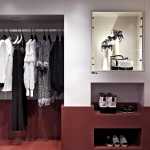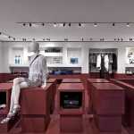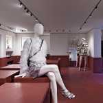 Una volta entrati nella Boutique, i codici della Maison si manifestano con discrezione. L’iconico, emblematico tessuto in tweed impreziosisce un divano e un camerino in un interno bicolore dove pareti, pavimenti e nicchie sono saturi di una vernice rosso lampone in sapiente contrasto con il bianco. Le sfumature di rosso all’interno della Boutique richiamano l’esterno, in un infinito gioco di rimandi. Il decoro costituisce la cornice ideale per presentare una selezione della collezione Métiers d’Art Paris Amburgo 2017/18, dal prêt-à-porter a borse, scarpe e accessori creati da Karl Lagerfeld. Le vetrine ospitano una selezione di gioielli d’eccezione dell’esclusiva collezione Camélia Ajouré e una di iconici orologiBOY.FRIEND e J12.