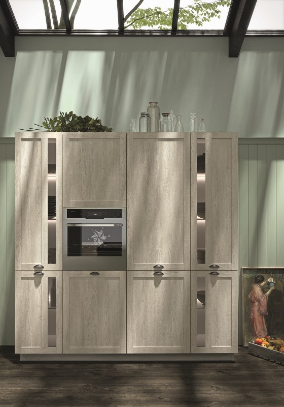 Simbolo per eccellenza dell’accoglienza e della convivialità, Snaidero propone in cucina lo stile country inglese in chiave inedita, elegante e raffinata dal nome Hera. Il filo conduttore che “costruisce” tutta la cucina è un’anta con telaio di 6 cm, che ne veste ogni elemento: dalle ante dei pensili, a quelle delle basi, delle colonne e degli accessori; un ingrediente che conferisce a tutte le composizioni forza comunicativa e uno stile senza tempo. Sia nell’applicazione nei pensili che negli armadi, l’anta telaio di Hera può essere utilizzata nella sua versione cieca, totalmente vetro o vetro e specchietto. Tradizione artigianale e cultura del design trovano in questo progetto l’autentica espressione del Made in Italy.