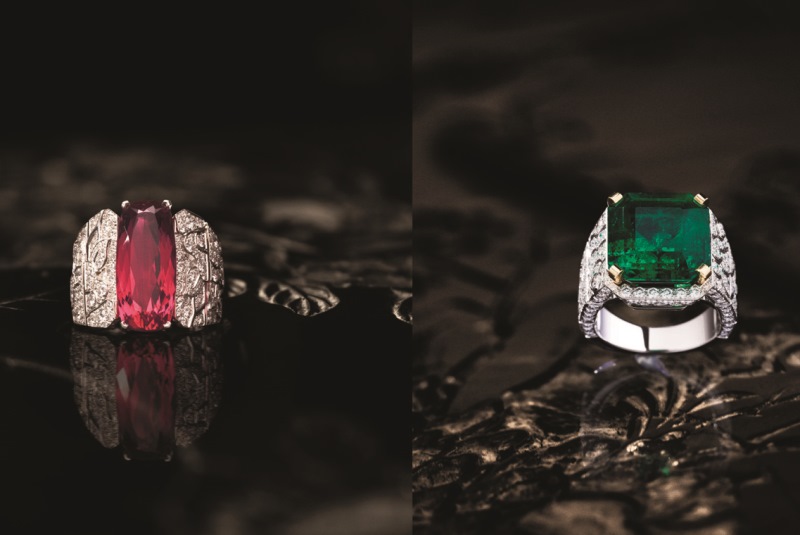 Infine, le gemme della collezione ricordano tutta la gamma cromatica delle lacche di Coromandel: il verde dei granati tsavorites, degli smeraldi o di una tormalina,di oltre trentasette carati sull’anello “Vibrazione Minerale”; il rosso dello spinelle dell’anello “Evocazione Floreale” e dei beads di rubino e la profondità ipnoticadella lacca nera trasposta in onice. Locali magici e virtuosi che offrono, una volta ancora, l’illustrazione dell’abilità incomparabile del laboratorio di Alta Gioielleria CHANEL, e dell’inesauribile inventiva dello Studio di Creazione, intorno all’universo segreto e prezioso di Gabriella Chanel.